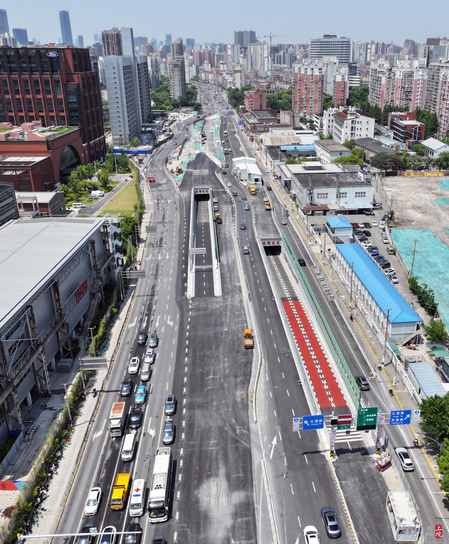 建成通车后,在不堵车的情况下,从最东面的周家嘴路隧道出口开到最西面的虹桥枢纽只需半个小时左右,通行时间缩短一半!