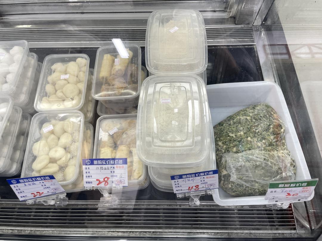 陈吉庆介绍,绿杨邨金牌香菇素菜包每天可以卖出6000只左右,肉包2000多只,恢复到平日里六成的水平,夏令时节的糟货也恢复供应:“毛豆、黄瓜、凤爪。这里是半制品的,有蛋饺还有炸猪排,我们馄饨馅差不多要卖六十多斤,买一包我送一包我皮子让他们自己回去包。”