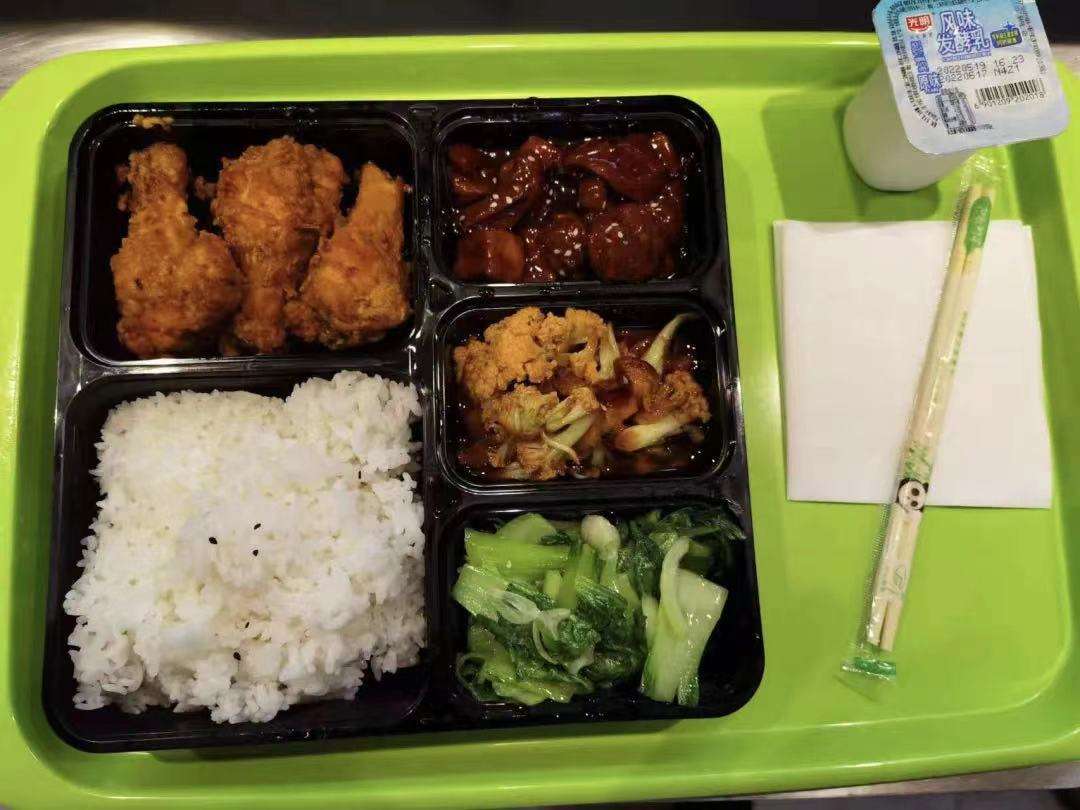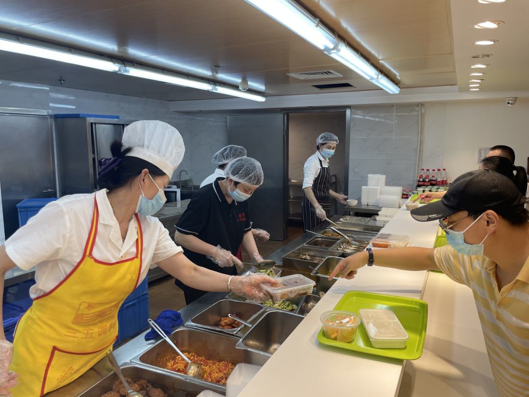 厨师长曾亚洲介绍:“在大楼里面他们单位,他统计每天上班多少人,自己选30块钱的标准,20的标准,我们就做好给他送上去。静安区几个附近的,中企物业每天也是我们送过去的。”