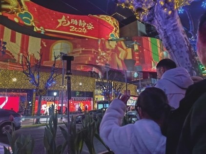 夜幕降临,在上海商城的巨型屏幕上,在裸眼3D技术的加持下,一条“巨龙”一下跃出屏幕,闪现在路人的面前。春节临近,上海处处洋溢着浓郁年味。光影秀、写春联、赏年画……这些特色年味,伴人们过一个有滋有味的海派新年。