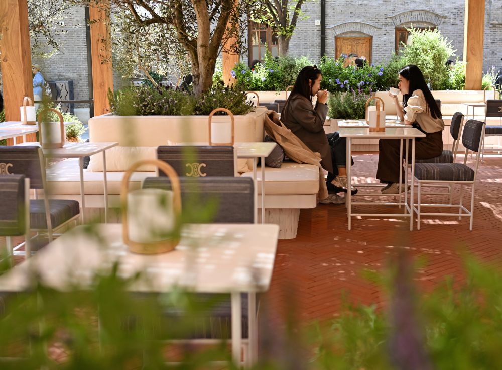 4月14日,游客在限时精品店的庭院中喝咖啡。新华社记者 刘颖 摄