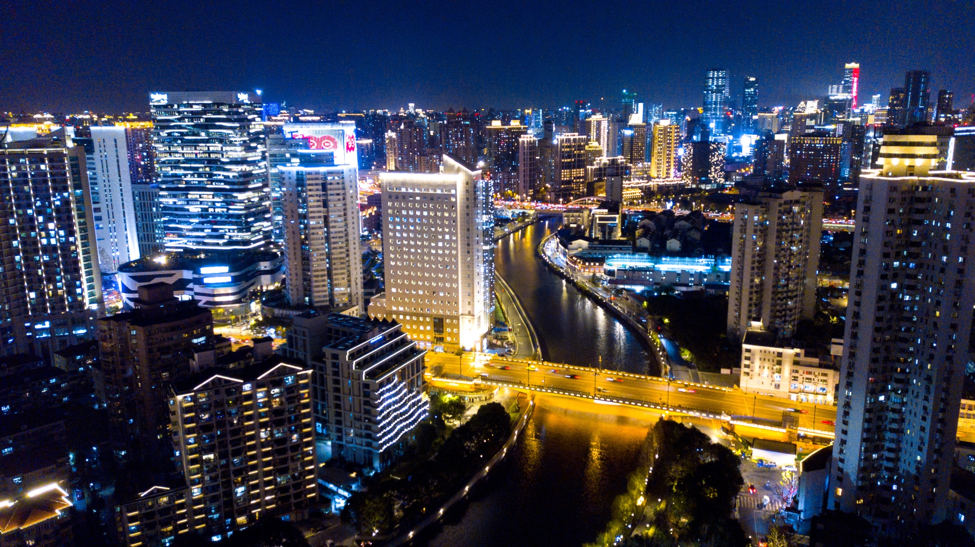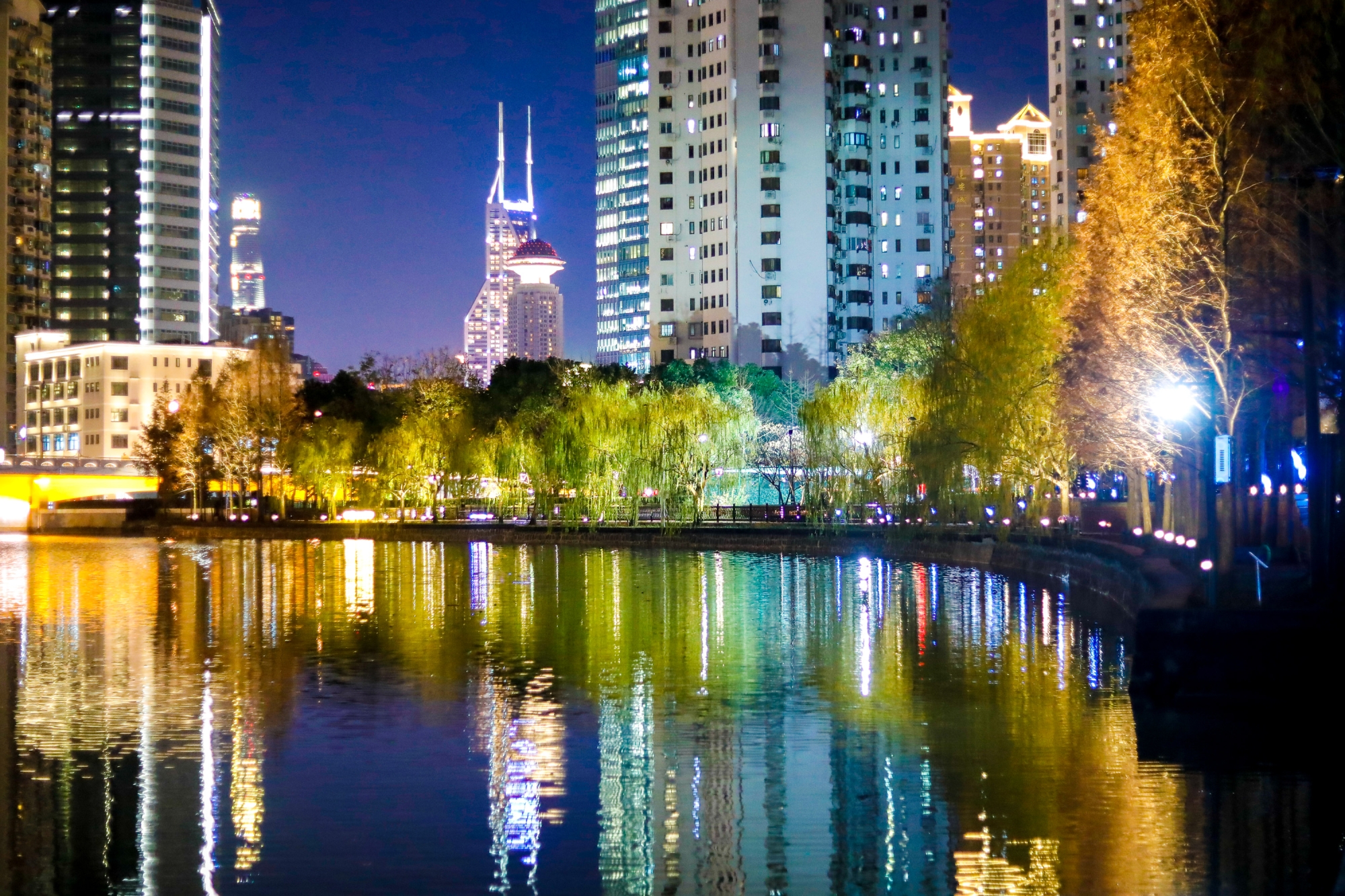 苏州河静安段夜景灯光全线亮灯,打造色彩缤纷的光影世界