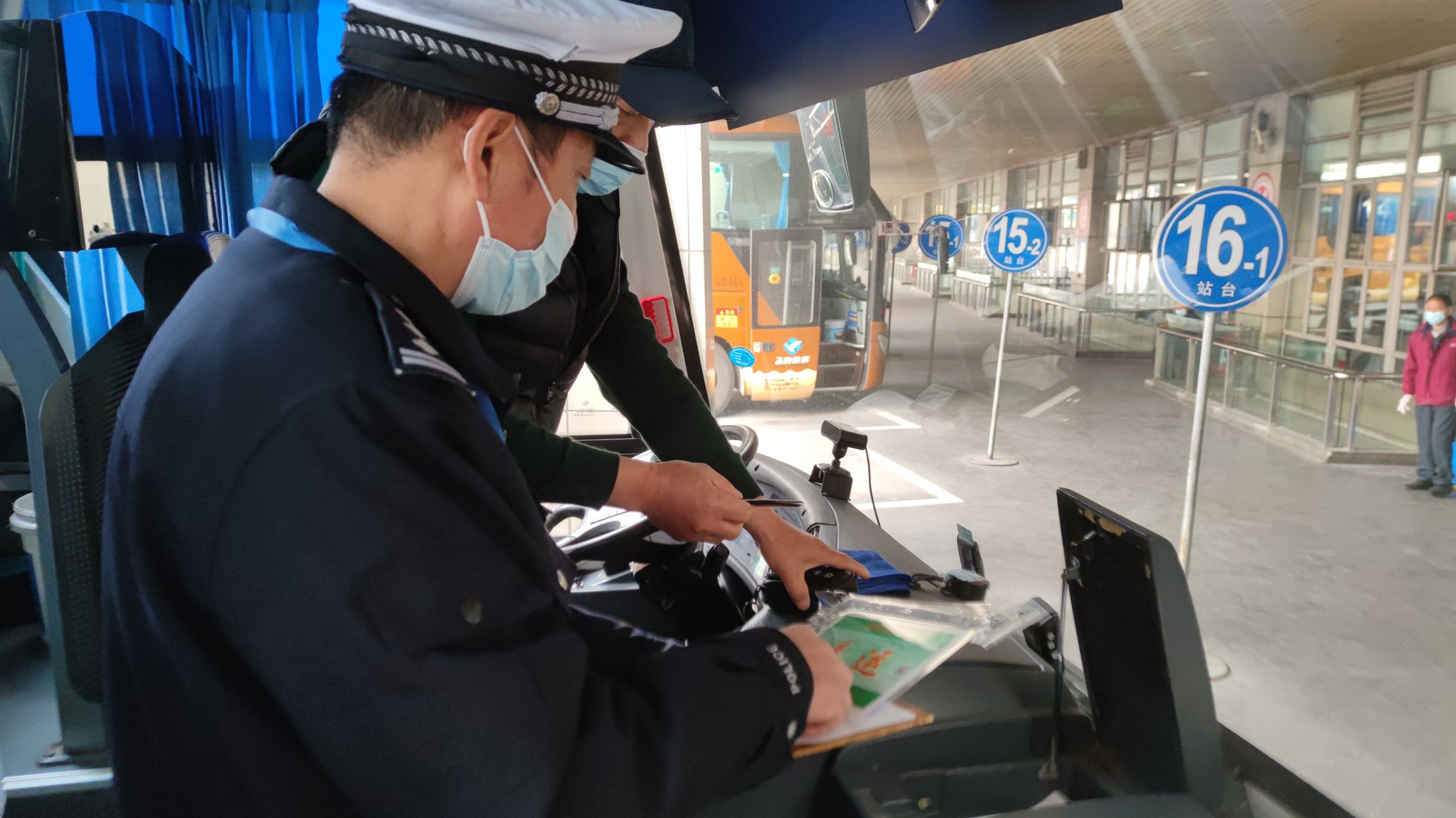 此外,警方也针对客运车辆加强了路面巡查,通过站外固定路口、区域设卡盘查,对出车车辆的春运证及企业对驾驶员随身携带责任书进行问询和检查。