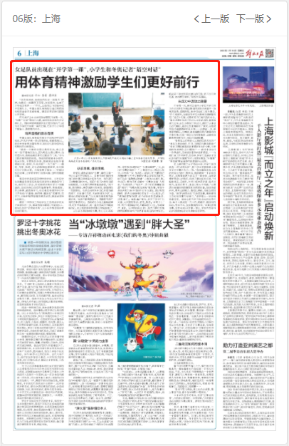 昨天是沪上中小学校新学期的开学第一天,“冬奥”“女足”等热门元素,出现在各学校的开学典礼上。用体育精神激励学生们更好地前行,成为不少学校开学第一课的主题,在孩子们心中埋下敢奋斗、勇拼搏的种子。