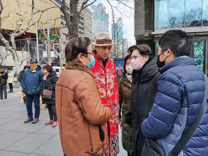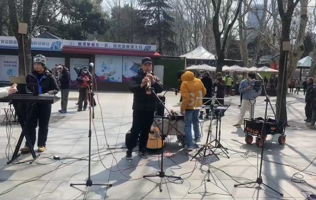 中午11时,上海的街头艺人们从四面八方赶到了静安公园,音乐艺人王雷、林晓明、小黑、刘晓明等,手工艺人李雄刚、陈超友、刘飞虎等,他们用萨克斯独奏《你是我的阳光》、歌曲演唱《阳光总在风雨后》《至少还有你》《稻香》等一首首曲目,在料峭的春寒中,编制了温暖的旋律。