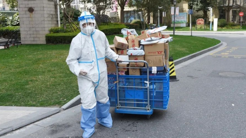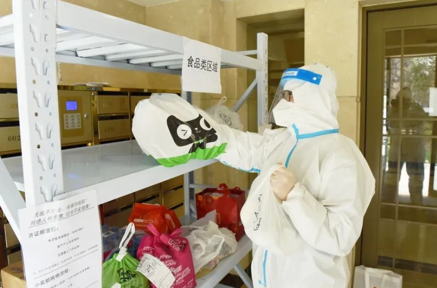 快递、外卖始终是“小区外”的物件,在保障居民生活需要的同时,提升配送的安全性成了重中之重。王军介绍,“在香溢花城小区封控期间,我们做到了‘无接触配送’,通过划分交接区、消杀区、转运区,分区域闭环转运,既便于快递小哥分拣,也减少了人员接触,避免交叉感染。”