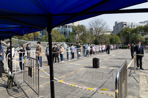 刚刚做完核酸检测的白领们纷纷表示,市北高新园区新增的核酸检测绿色通道既方便快捷,又安全有序。实实在在地把核酸检测服务送到了企业“家门口”、“楼底下”。