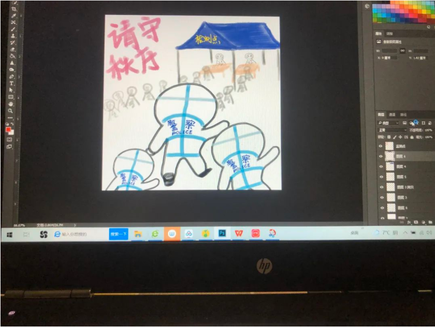 为了能在疫情之下更生动形象展现民警的工作风采,引导居民用更乐观的心态去面对挑战,赵雅韵在工作之余,着手动笔画起了“公安大白的抗疫日记”。
