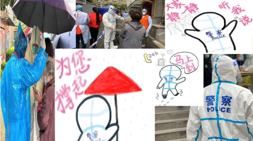 社区热传!上海民警手绘软萌“大白抗疫”表情包 | “疫”线警察蓝