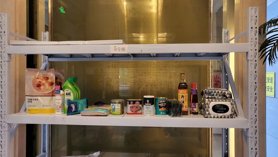 昨天早上,我们楼里的保洁阿姨注意到了大厅里的爱心货架,看到上面有各种生活用品,她不知道这些是谁家的物资,就去问物业经理。物业经理告诉她,这是居民们拿出来供大家取用的物资,如果保洁阿姨需要,也可以拿。