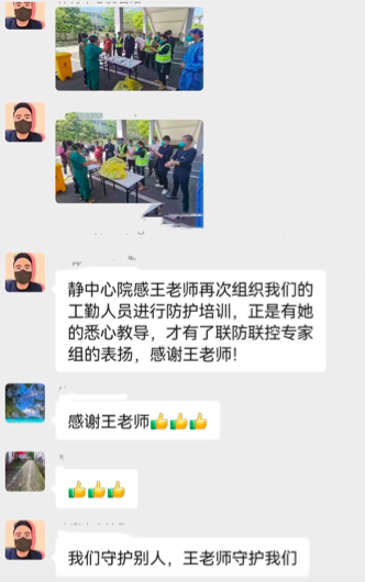 方舱内所有工作人员不一定都认识我,但没人不认识她,都很自豪地说:“我们保护病人,王老师保护我们,她是我们的守护神”。