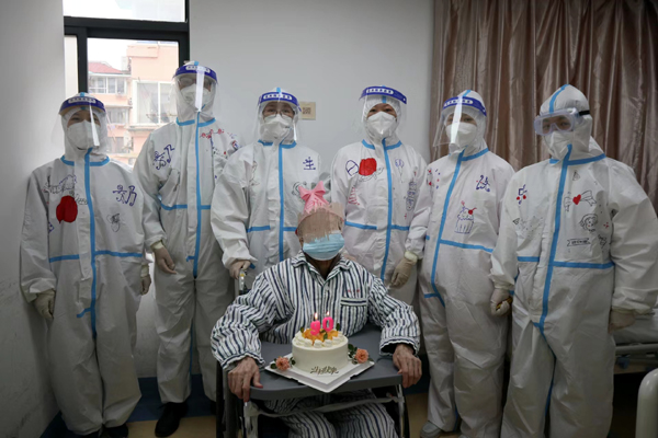 图说:医护人员给90岁老人送上最真诚的祝福:生日快乐!刘兆杰 摄