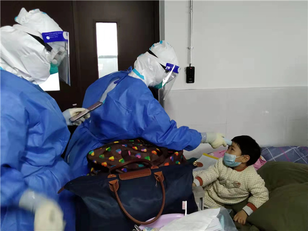 有需要服药的,及时把药品分发到患者手中;有防护物资快用完的,赶紧为其补充;有身体感觉不适的,拿出对讲机和医护人员沟通;对用餐有特殊需求的,用笔记下后与后勤组对接;还有看到情绪明显焦虑不安的,上前负责开导陪聊,也是付俊的职责所在。这些看似琐碎、却关乎患者身体和生活质量的细枝末节,付俊每一个都全力去做、尽力满足。