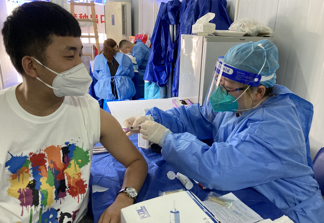 市民张先生和同事相约前来注射疫苗,他告诉记者,之前疫情原因耽误了第三针的接种,无意中发现这里可以打疫苗,离公司又近,便立刻通过健康云完成预约,下了夜班后直奔这里。“接种疫苗是作为公民应尽的责任和义务,作为年轻人更应该积极响应国家号召。”他说。