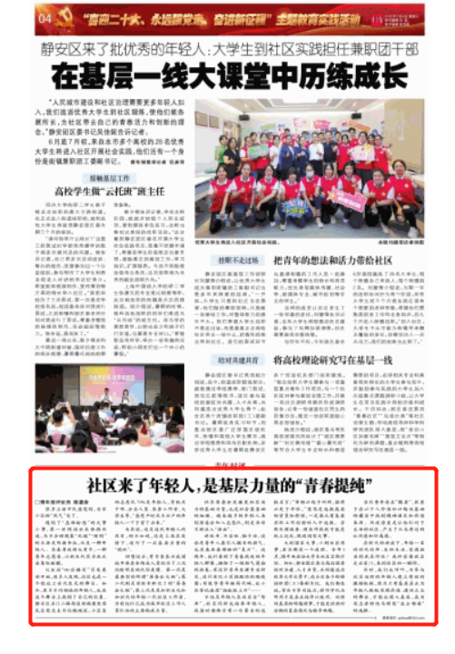 大到国家大事,小到社区琐事,其实都是一个道理。今年3月,团中央启动大学生社区实践计划。例如,静安团区委与高校团委结对共建、人才共育,共同遴选出优秀大学生骨干,赴全区各个街镇挂职团(工)委副书记。我们都在说,学历不等同能力,将所学化为所用才是真正地学以致用。处理好基层的难题琐事,才能更好面对后期的复杂情况与棘手难题。