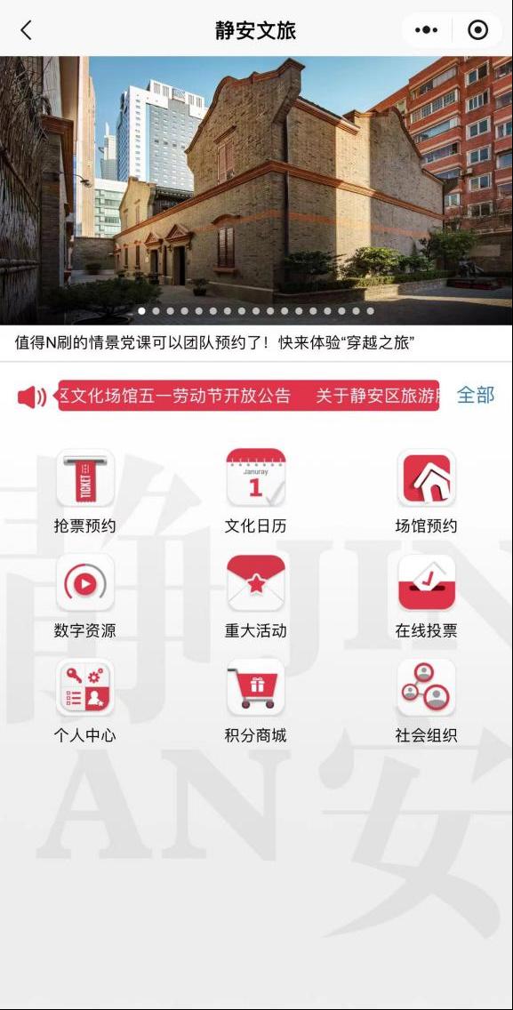 “静安文化公益配送及文旅消费”微信小程序于2020年上线,目前注册用户13.8万,除了可领取各类公共文化券,还加入了美育课堂,情景党课等板块,为用户提供更多富有静安特色的优秀文化资源,高质量的公共艺术教育供给。