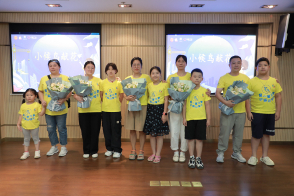 活动上,“小候鸟”代表们登台给自己的爸爸妈妈们献上一束花,并亲口向父母表达感谢。在“童心筑梦”主题生日会环节,每一位到场小朋友都过了一场集体生日,还收获了学习加油包。