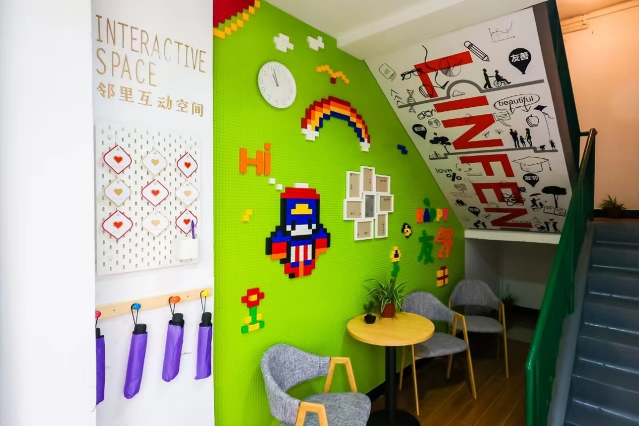 临汾路380弄社区由居民们改造的楼梯公共空间。静安区临汾路街道供图