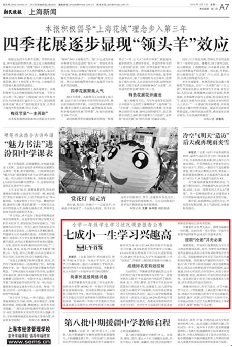 与此同时,市教委还首次委托第三方专业机构对“基于标准的教学与评价”这一政策举措在上海17个区县的执行情况作了调查,杨浦、虹口、普陀、静安、长宁等五个区县分列政策执行情况前5名。结果显示,近八成学校设置2-4周的学习准备期,六成学校安排每周半天的快乐活动日,超过八成学校能够做到每月一次家长开放日,69.25%的学校不再采用传统的打分形式,而是采用等第制对学生进行评价,对学生学习成绩进行排名或变相排名的情况已经有效控制。