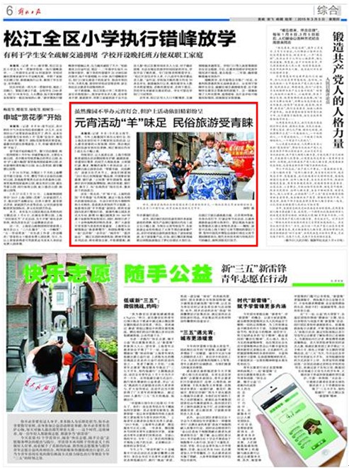 传统项目,让人流连忘返。上海方塔园新春游园会活动期间将有沪剧、越剧表演、非遗项目观赏、民间艺人现场表演、元宵猜灯谜、舞龙、舞狮巡演等十多项活动。在上海醉白池公园举办的“琴棋书画、民俗醉白”迎春文化艺术节上,游客们将看到“2015松江丝网版画”精品展、中国紫砂瓷器展、猜灯谜、“云间墨”青年国画等。临港地区的中国航海博物馆,通过折纸船、猜灯谜、做手工、玩“东南西北”闯关任务,激发孩子的创造力。