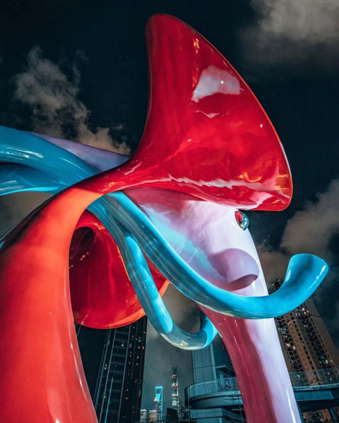 据了解,该艺术项目于9月30日正式对公众亮相,上海苏河湾万象天地也同日开始试运营,并将于10月13日正式启幕。同时,以该艺术装置为灵感打造的全部衍生品已于昨日上架,开卖不到10分钟便已全部售罄,所获收益将全部用于慈善。