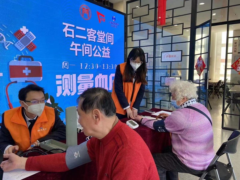 图片说明:上海农商银行静安支行“心家园”公益服务者参与“石二客堂间 午间公益”系列活动