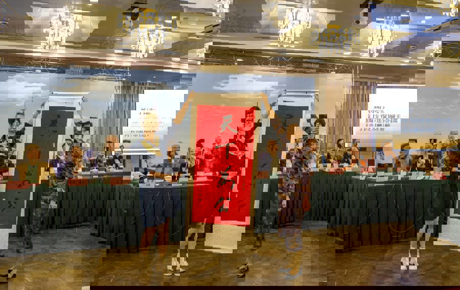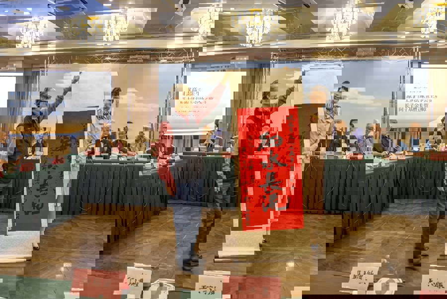 书法家刘小晴赠长青文化专项基金“天下为公”贺幛