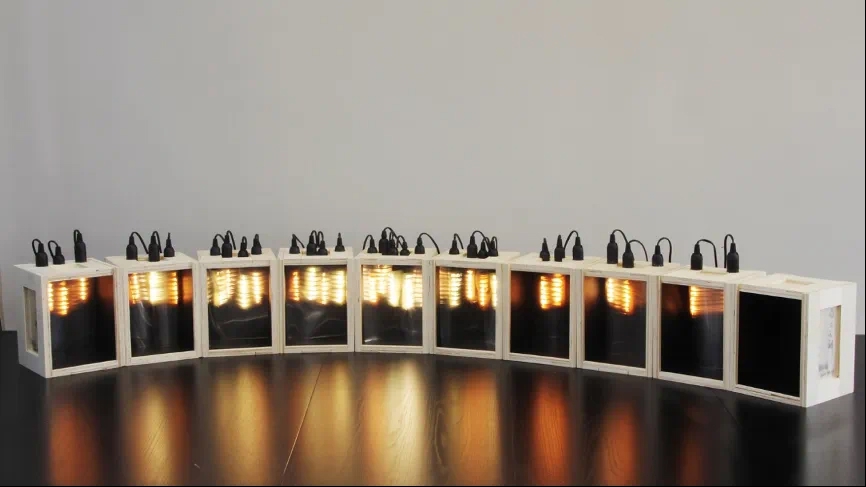 唐钰涵《无周公无解》150 x 21 x 17cm 木盒、led灯管、UV转印贴、光栅片、开关