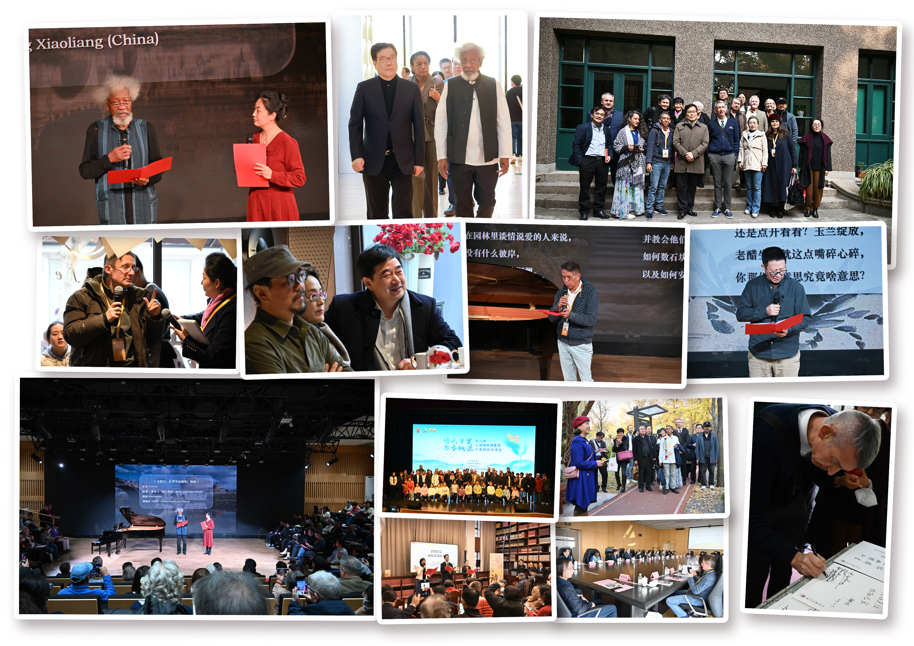 尼日利亚诗人沃莱·索因卡荣获本届上海国际诗歌节“金玉兰”诗歌大奖。本届诗歌节邀请了国内外多位诗人,包括外国诗人沃莱·索因卡(尼日利亚)、马加里托·奎亚尔(墨西哥)、伊昂·德亚科内斯库(罗马尼亚)、于格斯·拉布吕斯(法国)、杰曼·卓根布鲁特(比利时)、张如凌(法国)、恩里克·索利纳斯(阿根廷)、弗拉米尼亚·克鲁恰尼(意大利)、马可·索佐尼(意大利)、李炜(美国)、大流士·托马斯·莱比奥达(波兰)、潘黄(越南)、托尼·莫查玛(肯尼亚),中国诗人有欧阳江河、陈先发、娜夜、沈苇、熊焱、赵四、安海茵、黄怡婷等。