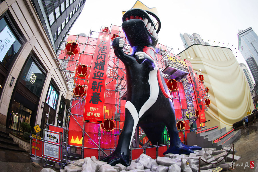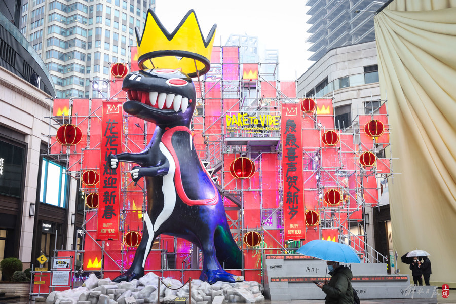 《戴皇冠的小恐龙》公共艺术装置高达15米,以“轰轰龙龙”的姿态生动展现国际先锋艺术的独特魅力,引发消费者打卡热潮。