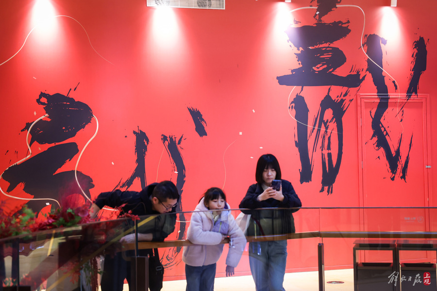 新锐艺术家黑凹运用传统书法艺术演绎“龙”字,创作《龙好上海,2024》巨幅书法作品。