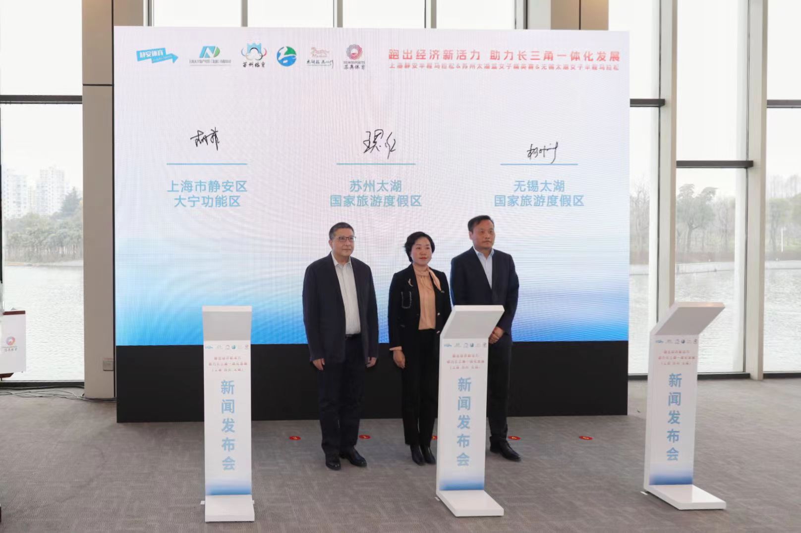 今天(6日)下午,大宁功能区2024上海静安半程马拉松赛事组委会召开新闻发布会。苏州太湖蓝女子精英赛、无锡太湖女子半程马拉松、上海静安半程马拉松三项赛事主办方联合发布赛事信息,开展赛事助力长三角一体化发展战略合作签约及启动仪式。三项赛事的参赛选手成绩达到相应标准,将获得免费直通其他两项赛事的参赛名额,鼓励路跑爱好者“跟着赛事去旅行”。