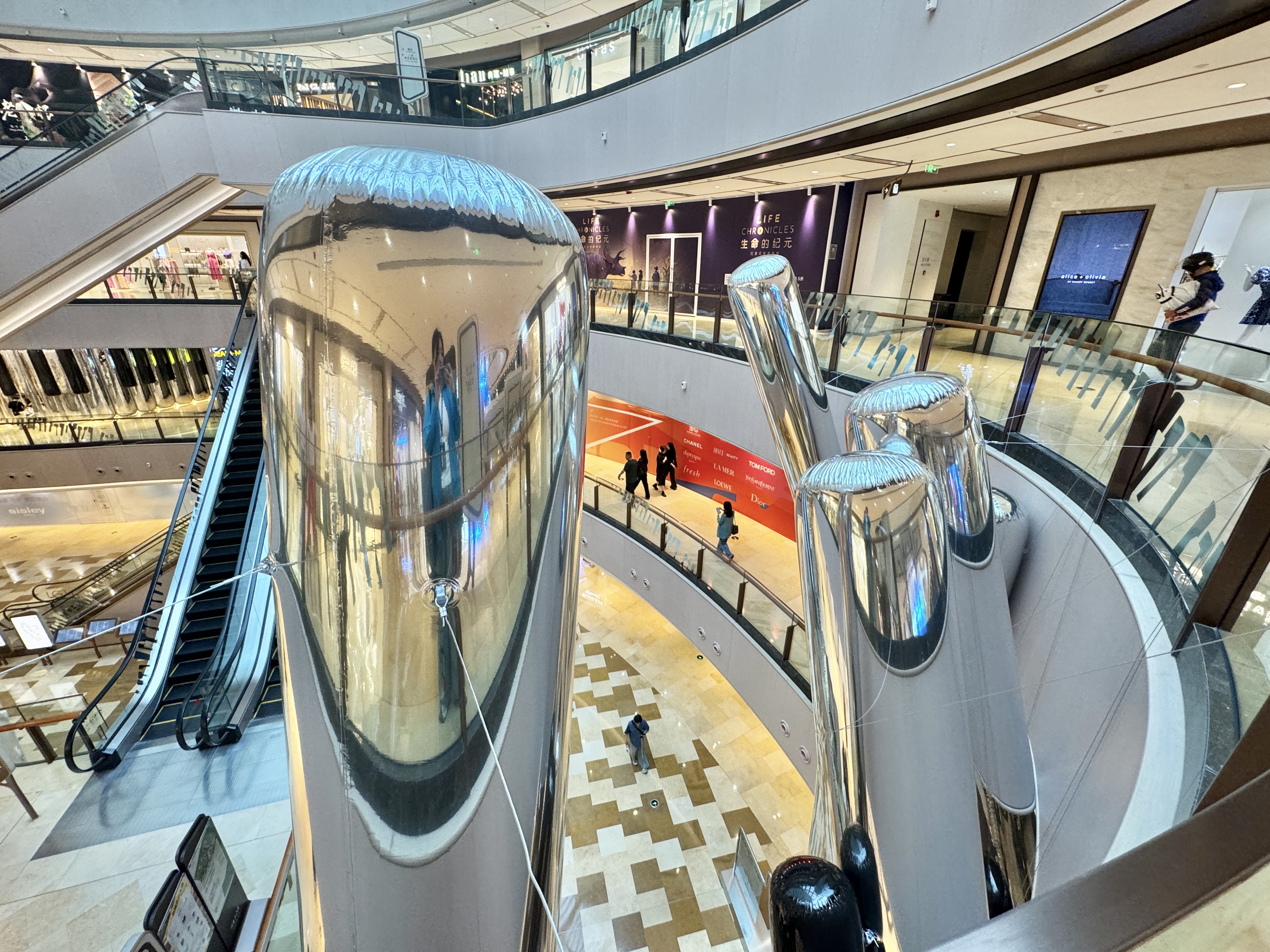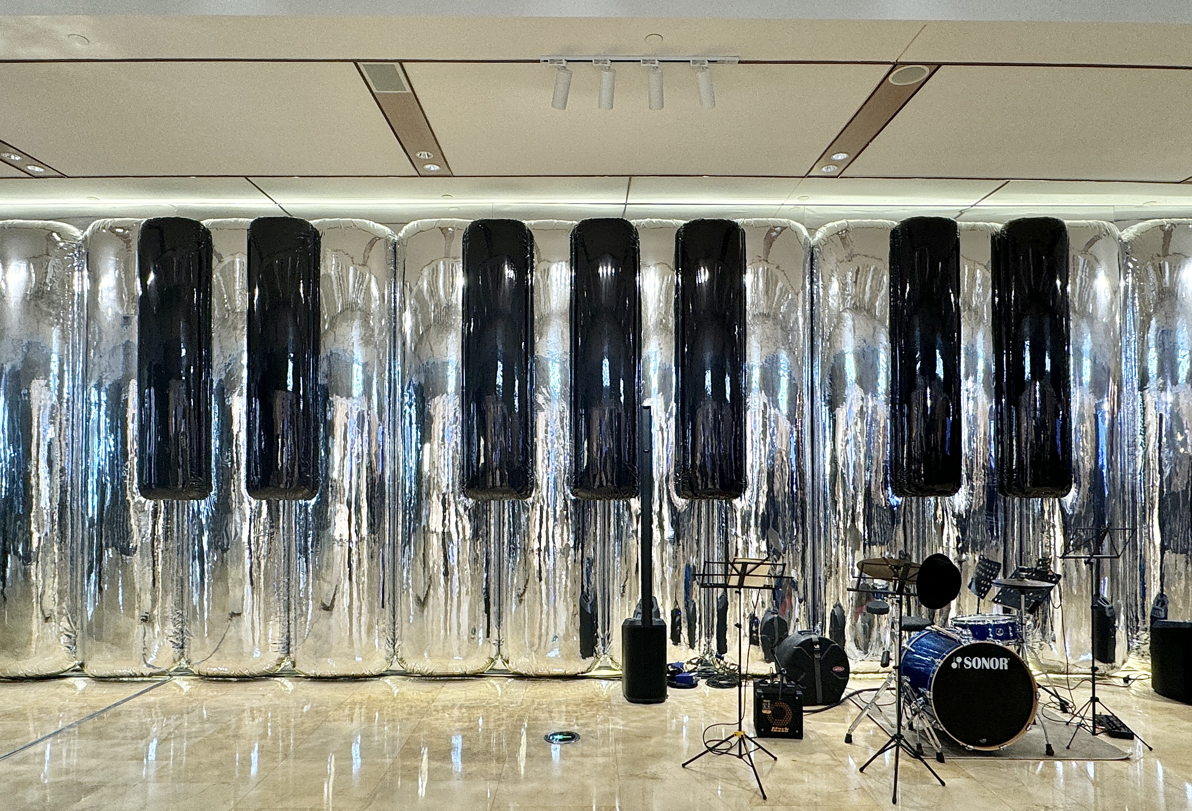 这几天,走进兴业太古汇商场一楼的长廊,你会发现流转着金属光泽的经典黑白琴键被巧妙放大。由商场的北门进入,黑白琴键从三楼垂落而下,灵动跳跃,仿佛正在奏响夏日乐章。