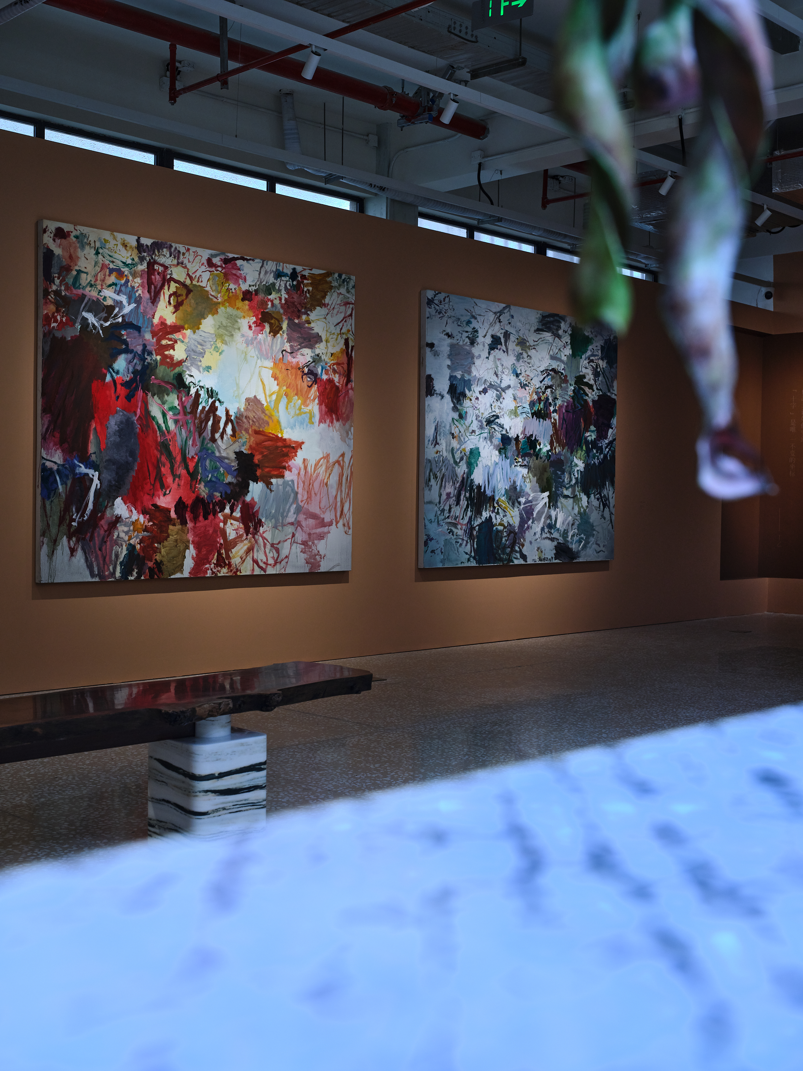 此次展览中呈现了艺术家黄渊青《无题》系列中的四件作品,其创作灵感源于中国传统书法与篆刻。在作品中,艺术家将书法的灵动融入油彩、纸张与布面之中,以中国书法为锚点并于此之上不断继承与创新,如同大都会的霓虹光影融入中国书法的笔墨之中,与独特的融合中外、古今的上海记忆与经验协奏。