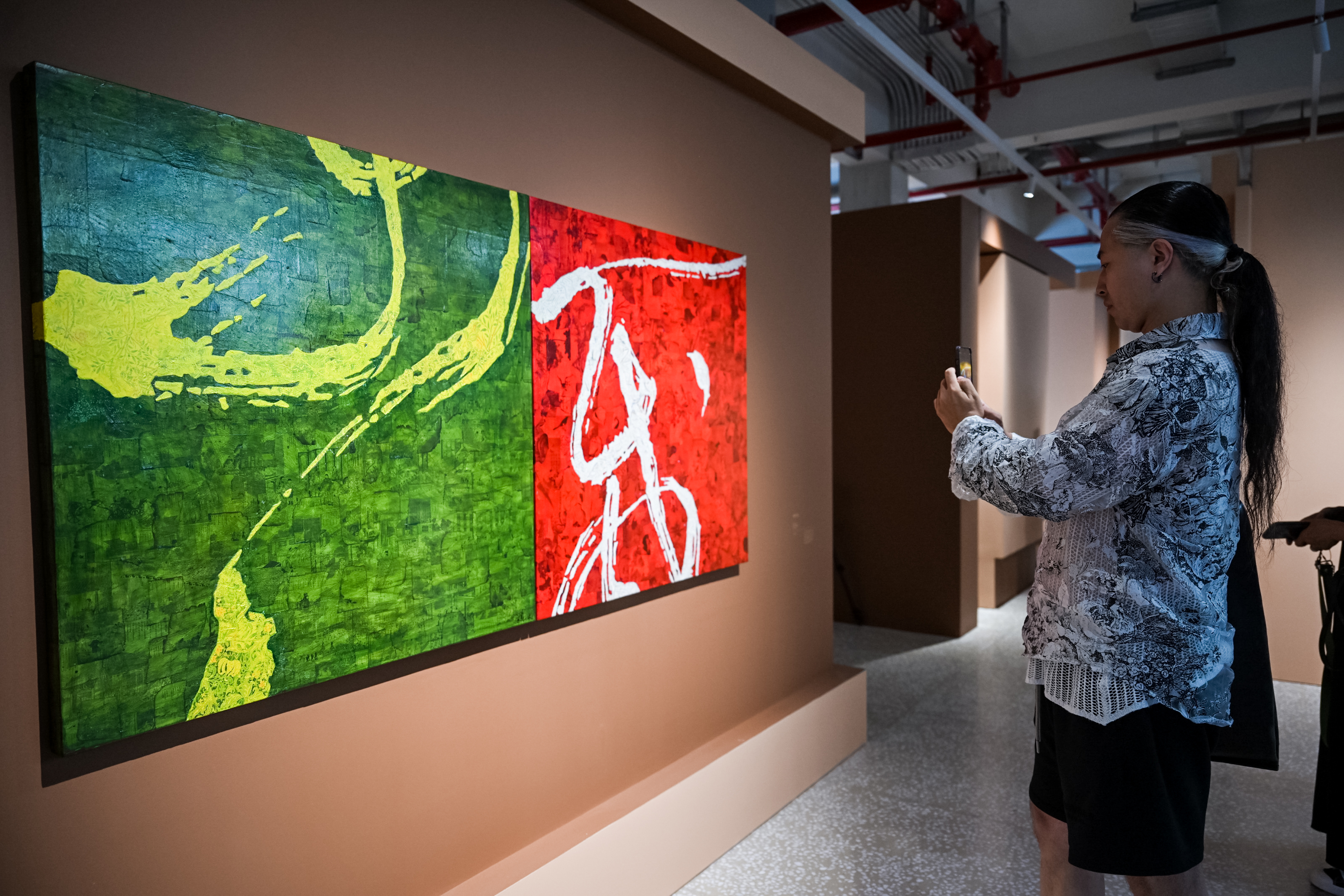 步入门厅,艺术家薛松的四件作品映入眼帘。《新山水》系列以中国山水画为主体内容,以西方拼贴、蒙太奇手法作为创作方法,结合中与西、传统与当代、精英与大众,呼应了上海城市文化与历史的纹理与叠层。