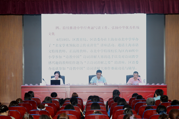 9月19日,静安区教育系统第27届全国推广普通话宣传周大会暨区语委、语委办成立30周年“文化自信从中国的文字和语言开始”情境朗诵专题讲座在静安区教育学院举行。本届推普周以“加大推普力度,筑牢强国语言基石”为主题。会议由静安区语委办副主任丁炜主持。区教育局副局长孙勇、区教育学院副院长汪振兵出席会议。静安区教育系统160余所中小学、幼儿园语言文字工作分管干部参加了会议。