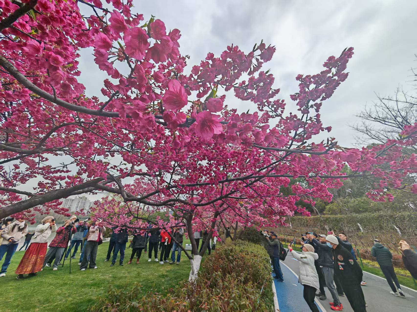 花朝节期间,静安大宁公园内樱花绽放,游人如织。李治国摄